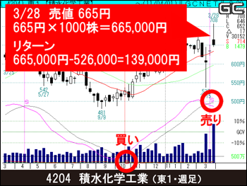 ¡¡¤µ¤Æ¡¢2·î¤ËÆþ¤ê¡¢650±ß¤¢¤¿¤ê¤Ç³ô²Á¤Îư¤¤¬»ß¤Þ¤ê¤Þ¤·¤¿¡£¤µ¤Æ¡¢¤³¤Î¸å¤É¤Î¤è¤¦¤Ë¤Ê¤Ã¤Æ¤¤¤¯¤Î¤Ç¤·¤ç¤¦¤«¡£Àè¹Ô¤¤¬µ¤¤Ë¤Ê¤ë¤È¤³¤í¤Ë¡¢£³·î11Æü¤Î¿ÌºÒ¤Ç¤¹¡£¿ÌºÒÍâ½µ¤Ï¡¢°ì»þ100±ß¤Û¤É²¼¤²¡¢¤³¤ì¤Þ¤ÇÃÏÆ»¤ËÇã¤Ã¤Æ¤¤¿¥ê¥¿¡¼¥ó¤¬°ìµ¤¤Ë¾Ã¤¨¤¿µ¤¤¬¤·¤Þ¤·¤¿¡£¤Ç¤¹¤¬¡¢¤Þ¤ÀºÇŬ²½ÇäÇ㥵¥¤¥ó¤ÏS¡ÊÇä¤ê¡Ë¥µ¥¤¥ó¤òÅÀÅô¤·¤Æ¤¤¤Þ¤»¤ó¡£¤Ç¤¹¤«¤é¡¢»ý¤Á³¤±¤ë¤Î¤Ç¤¹¡£¤½¤¦¤·¤¿¤È¤³¤í¡¢¤è¤¦¤ä¤¯3·î¤Î4ËÜÌÜ¤Î¥í¡¼¥½¥¯Â¤Ç¡¢Çä¤ê¥µ¥¤¥ó¤¬ÅÀÅô¤·¤Þ¤·¤¿¡£¤³¤ì¤Ï¡¢£³·î28Æü¤Ë´ó¤êÉÕ¤À®¹Ô¤ÇÇäµÑ¤¹¤ë¤È¤¤¤¦¹ç¿Þ¤Ç¤¹¡£ÇäµÑÃͤϡ¢665±ß¤È¤Ê¤ê¤Þ¤·¤¿¡£665±ß¡ß1000³ô¡á665,000±ß¤È¤Ê¤ê¤Þ¤¹¡£Çä¤êÃÍ665,000±ß¡ÝÇãÃÍ526,000±ß¡á139,000±ß¤Î¥ê¥¿¡¼¥ó¤È¤Ê¤ê¤Þ¤¹¡£¤ª¤è¤½£µ¥«·î¤ÎÊÝͤǡ¢139,000±ß¤Î¥ê¥¿¡¼¥ó¤Ë¤Ê¤Ã¤¿¤È¤¤¤¦¤ï¤±¤Ç¤¹¡Ê¼ê¿ôÎÁ¤Ê¤É¤Ï¹Íθ¤·¤Ê¤¤¤â¤Î¤È¤·¤Þ¤¹¡Ë¡£