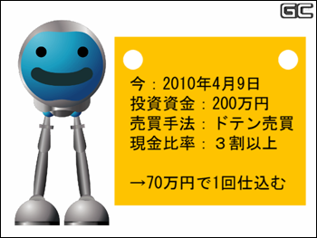 »þ¤Ï¡¢2010ǯ4·î9Æü¤Ë¤µ¤«¤Î¤Ü¤ê¤Þ¤¹¡£¡Ö°ÂÄêŪ¤ÊÌÃÊÁ¤¬¤¤¤¤¤Ê¡×¤È¹Í¤¨¡¢¡Ö°ÂÄêŪ¤ÊÌÃÊÁ¤È¤¤¤¦¤Ê¤é¾¦¼Ò¤«¤Ê¡©¾¦¼Ò¤È¤¤¤Ã¤Æ¤â¡¢¤¤¤í¤¤¤í¤¢¤ë¤±¤ì¤É¡¢¤Þ¡¢200Ëü±ß¤Îͽ»»¤À¤·¤Ê¡£º£²ó¡¢¥É¥Æ¥óÇäÇã¤òÍѤ¤¤ë¤«¤é¡¢»Å¹þ¤ß¤È¼ê»ÅÉñ¤¤¤òƱ»þ¤Ë¼è¤ì¤ë¤è¤¦¤Ë£²Çܤλñ¶â¤ò½àÈ÷¤·¤Æ¤ª¤¯¤³¤È¤Ë¤·¤è¤¦¡£¤Ç¤â¡¢Ç㤤²¼¤¬¤ê¤ò¹Ô¤¦»þ¤Î¤è¤¦¤Ë½áÂô¤Ë¸½¶â¤òÊÝͤ·¤Æ¤ª¤¯É¬Íפâ¤Ê¤¤¤·¡¢Â»ÀÚ¤ê¤â¤¤Á¤ó¤È¹Ô¤Ã¤Æ¤¯¤ì¤ë¤«¤é¡¢¸½¶âÈæÎ¨¤Ï£³³ä°Ê¾å¤Ë¤·¤è¤¦¡×¤È¤¤¤¦¾ò·ï¤òÀßÄꤷ¤¿¤È¤·¤Þ¤¹¡£¤Ä¤Þ¤êºÇÄãñ°Ì¤ÇÇäÇ㤹¤ë¤È¤·¤Æ¡¢70Ëü±ß¤Ç£±²ó»Å¹þ¤á¤ë¤È¤¤¤¦·×²è¤Ç¤¹¡£