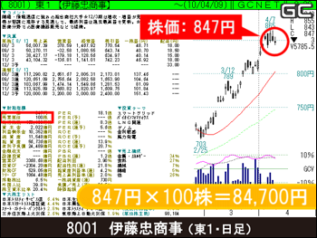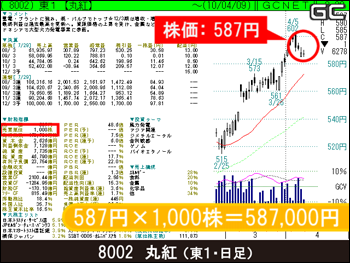 ¤½¤³¤Ç¡¢Í̾¤Ê¾¦¼Ò¤ÎÃæ¤«¤é¡¢Ä¾¶á¤Î³ô²Á¤ò¥Á¥§¥Ã¥¯¤·¤Ê¤¬¤é¤¤¤í¤¤¤í¤È¹Í¤¨¤Þ¤·¤¿¡£Åê»ñ»ñ¶â¤ÎÀïά¤Ë¤â¥Ô¥Ã¥¿¥ê¹ç¤¦¤«¤é¤È¤¤¤¦¤³¤È¤Ç¡¢8001°ËÆ£Ã龦»ö¤È8002´Ý¹È¤òÁª¤Ó¤Þ¤·¤¿¡£2010ǯ4·î9Æü»þÅÀ¤Î³ô²Á¤Ï¡¢°ËÆ£Ã龦»ö847±ß¡¢´Ý¹È587±ß¤ÇÌÃÊÁ¤òÁª¤Ó¤Þ¤·¤¿¡£°ËÆ£Ã龦»ö¤ÎºÇÄãÇäÇãñ°Ì¤Ï100³ô¤Ç¤¹¤«¤é847±ß¡ß100³ô¡á84,700±ß¤È¤Ê¤ê¤Þ¤¹¡£´Ý¹È¤ÎºÇÄãÇäÇãñ°Ì¤Ï1000³ô¤Ç¡¢587±ß¡ß1000³ô¡á587,000±ß¤È¤Ê¤ê¤Þ¤¹¡£¹ç·×¤¹¤ë¤È¡¢84,700¡Ü587,000¡á671,700±ß¤Ç¡¢70Ëü±ß°ÊÆâ¤Ç¤ª¤µ¤Þ¤Ã¤Æ¤¤¤Þ¤¹¤Í¡£