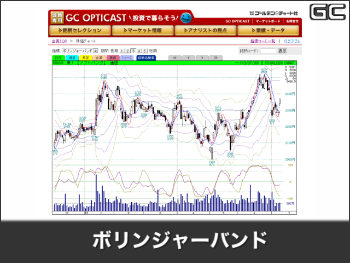 日足・週足・月足・企業業績など、チャート表示のベースとなる情報を選択した上で、お好みの指標を描画することができます。GCV(ゴールデンチャートベクトル)、RCI、ボリンジャーバンド、均衡表、売買サインなどより選択することができます。それぞれ選択すると、各指標が表示されます。もちろん表示期間を変えると、その期間に合わせて指標も再度描画されますので、長期でも短期でも分析することが可能です。