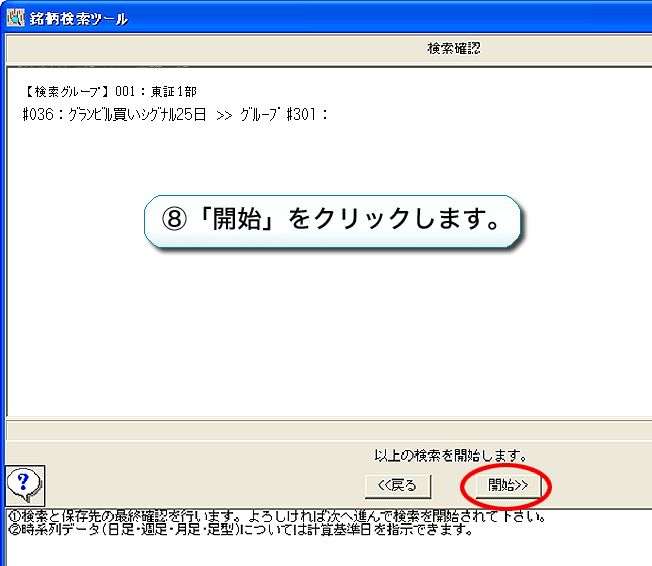 チャート画面から「ツール」「銘柄検索ツール」の順にクリックし、画面を表示します。