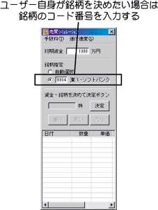 ユーザー自身が銘柄を決定してシミュレートを行いたい場合は、その下の入力欄に銘柄のコード番号を入力します。