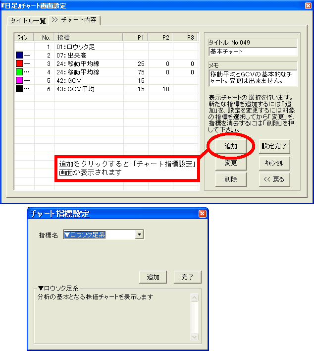 そうすると「チャート指標設定」画面が表示されます。